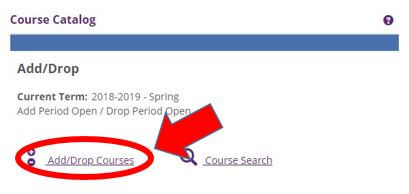 Once on the “Courses & Academics” tab, scroll down until you see the “Course Catalog” portlet and click “Add/Drop Courses”.