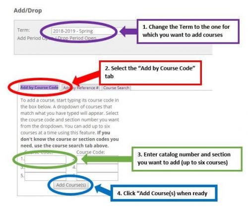 If you already know which specific courses you want to add, “Add by Course Code” may be the easiest registration method for you.