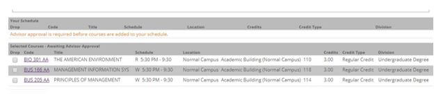 Once you are registered, your academic advisor will need to approve your schedule before it is considered ‘complete’. Your advisor may contact you with questions or concerns before approving your schedule, especially if your registered courses are different from the ones your advisor recommended. Please remember that you, as the student, are primarily responsible for course selection and making progress toward completion of your degree program. Departing from the course schedule worked out in partnership with your advisor may delay your graduation.